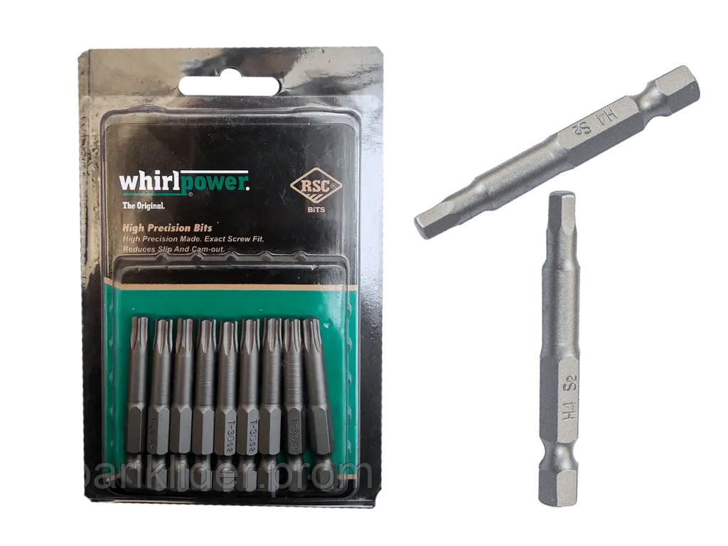 Біти WhirlPower виконані з високоміцної легованої сталі, витримують великі навантаження, мають насічки на гранях для запобігання вислизанню біти зі шліцю. Викрутки, що мають шестигранну робочу частину, називають шестигранними, скорочено НХ. Сфера застосування: Насадки-біти WhirlPower, використовуються як змінні насадки в ручному та механізованому інструменті, для закручування саморізів та гвинтів із шестигранним шліцем